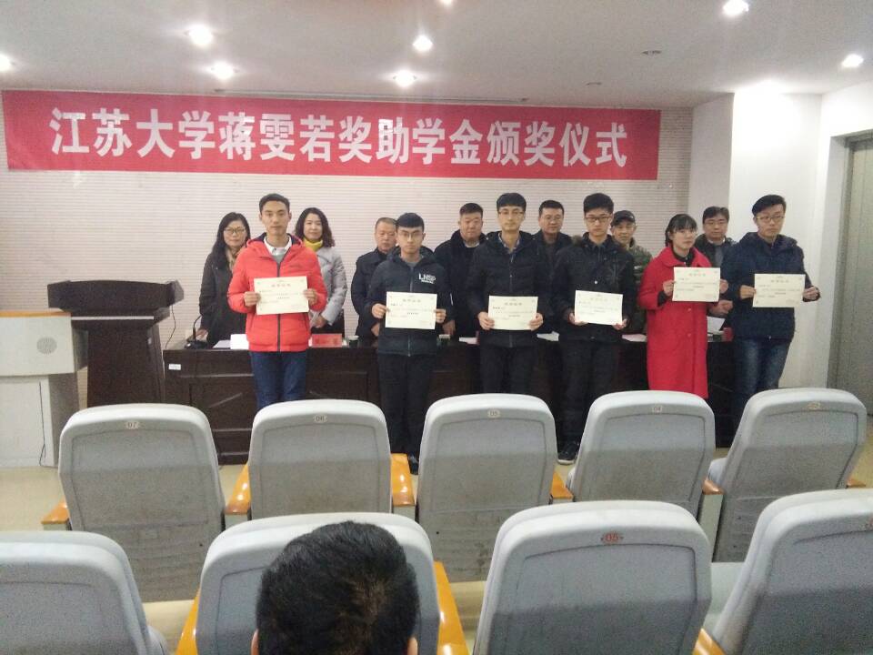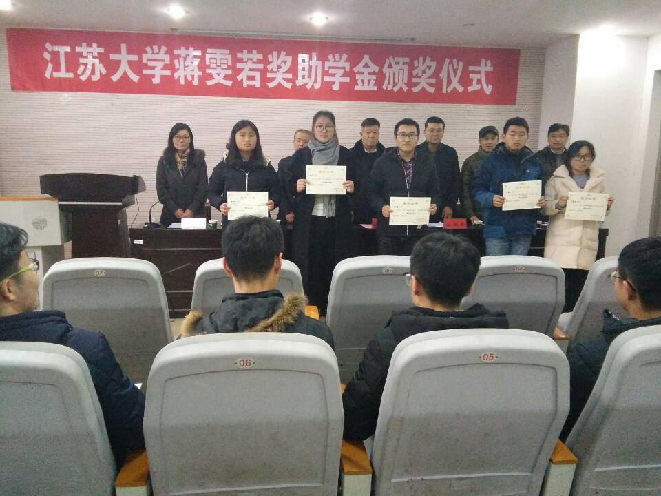 12月28日下午,江苏大学第九届“蒋雯若奖助学金”颁奖仪式在化学化工学院报告厅隆重举行。蒋雯若基金会理事长宋勤华先生、周盘敏先生、 院党委书记倪时平、院长施伟东、校学工处副处长范一蓉、发展办副主任王鹏等相关部门领导出席,院辅导员、全体获奖受助学生和往届受助学生代表参加了仪式。仪式由院党委副书记庄蕾主持。