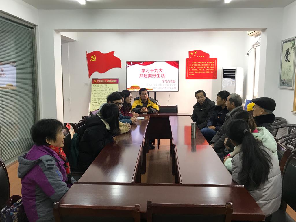 为推动十九大精神进社区、进街巷、进家庭,激发广大党员干部群众的自豪感、使命感,1月12号上午,在院党委副书记庄蕾、镇江市江滨新村江二社区党委副书记徐路宁的带领下,院化工系党支部、化学与应化专业本科生党支部和江二社区党支部共同开展"学习宣传十九精神、共建美好生活"的主题党日活动。